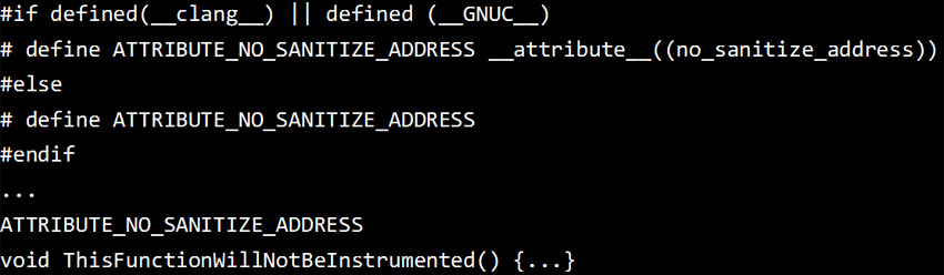 使用no_sanitize_address属性(Clang3.3及GCC4.8以上版本支持)定义如下的宏命令: